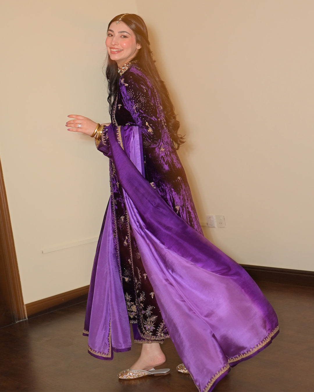 Elysia Shirt and Dupatta With Crushed Wide-Leg Pants