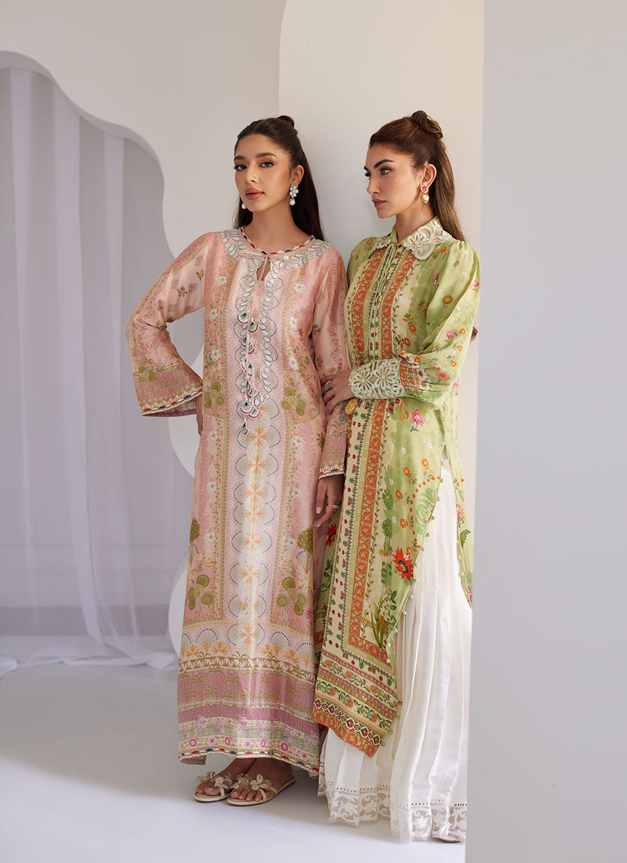 Our latest kaftan is a confection of charm — drenched in sugary hues of ivory and pale pink, and splashed with whimsical florals that feel like spring in motion. Cut from airy crepe, it flows effortlessly with every step, making it your go-to for instant impact with zero effort.