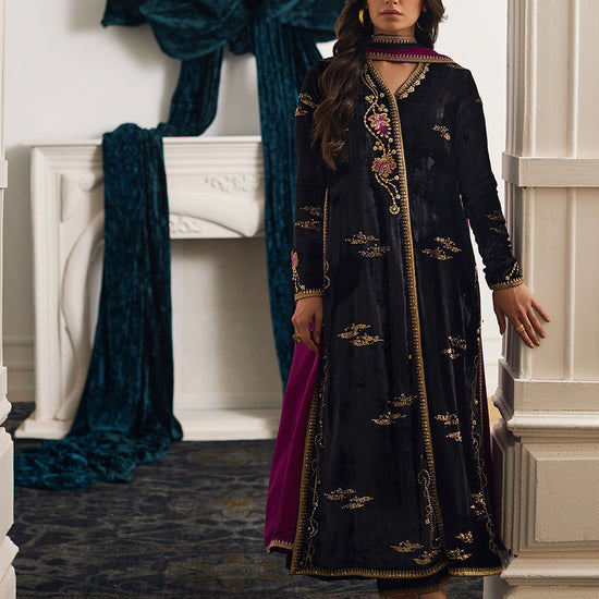 Cut from plush onyx velvet, this universally flattering shirt is richly embroidered and created to be loved for years to come.
