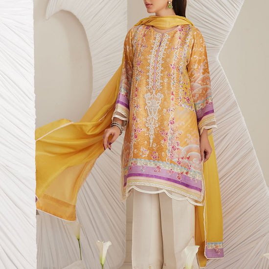 The easy breezy ,shirt is paired with a pure medium silk dupatta in bright printed borders.