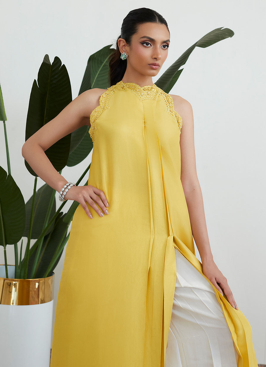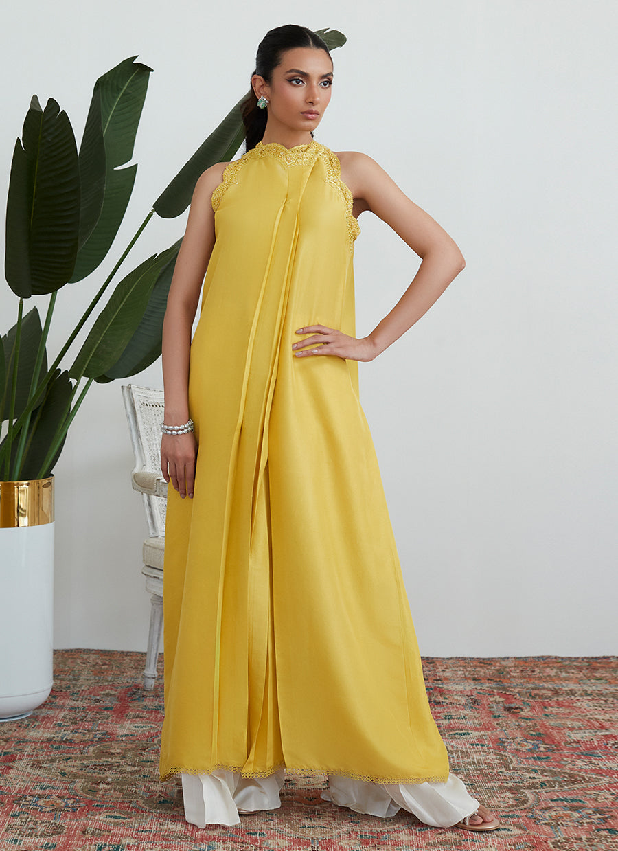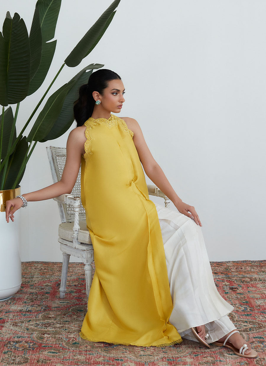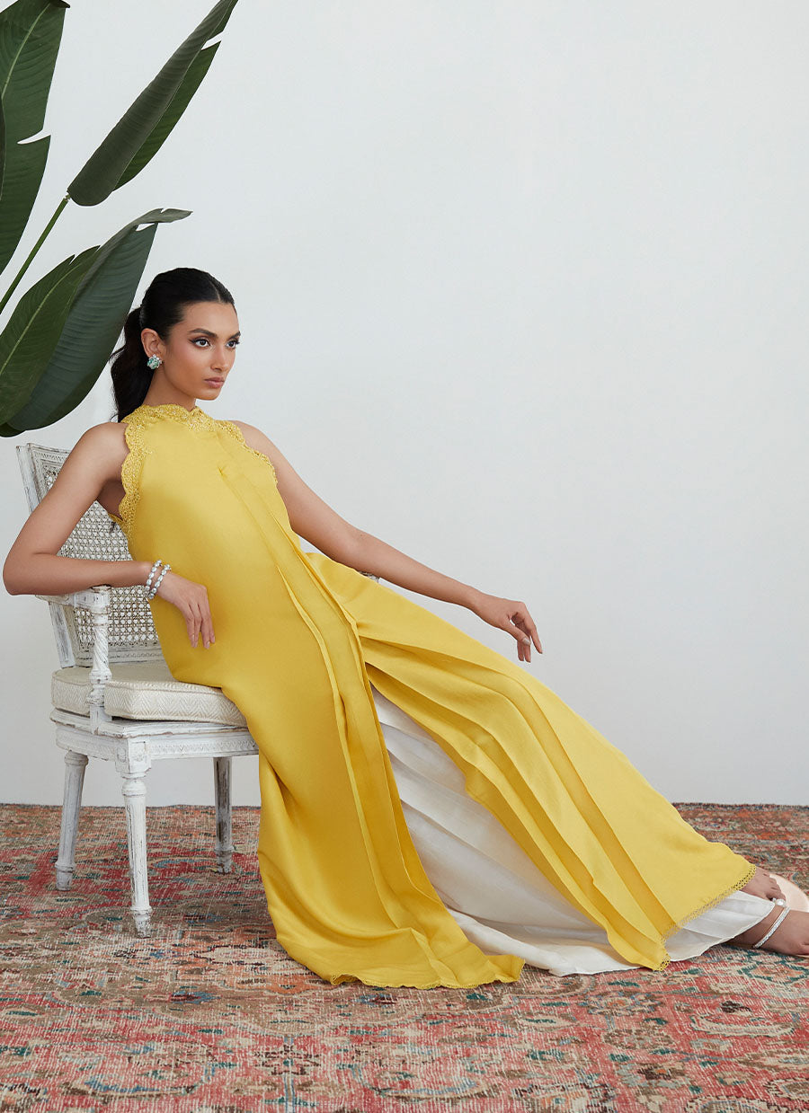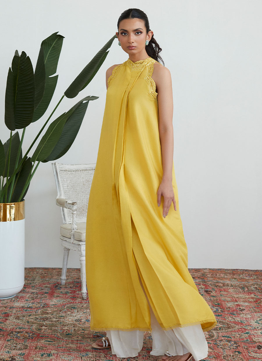 Cut from pure raw silk in a striking zesty kiwi green, the outfit features a modern neckline and an uber flattering contemporary silhouette.