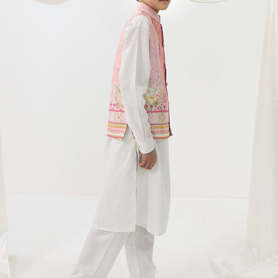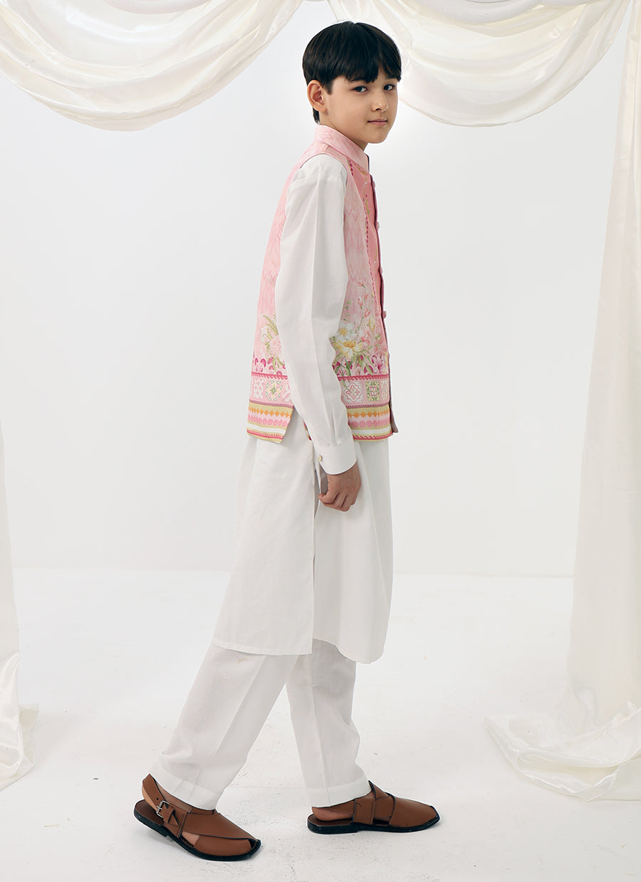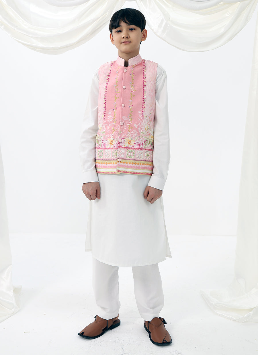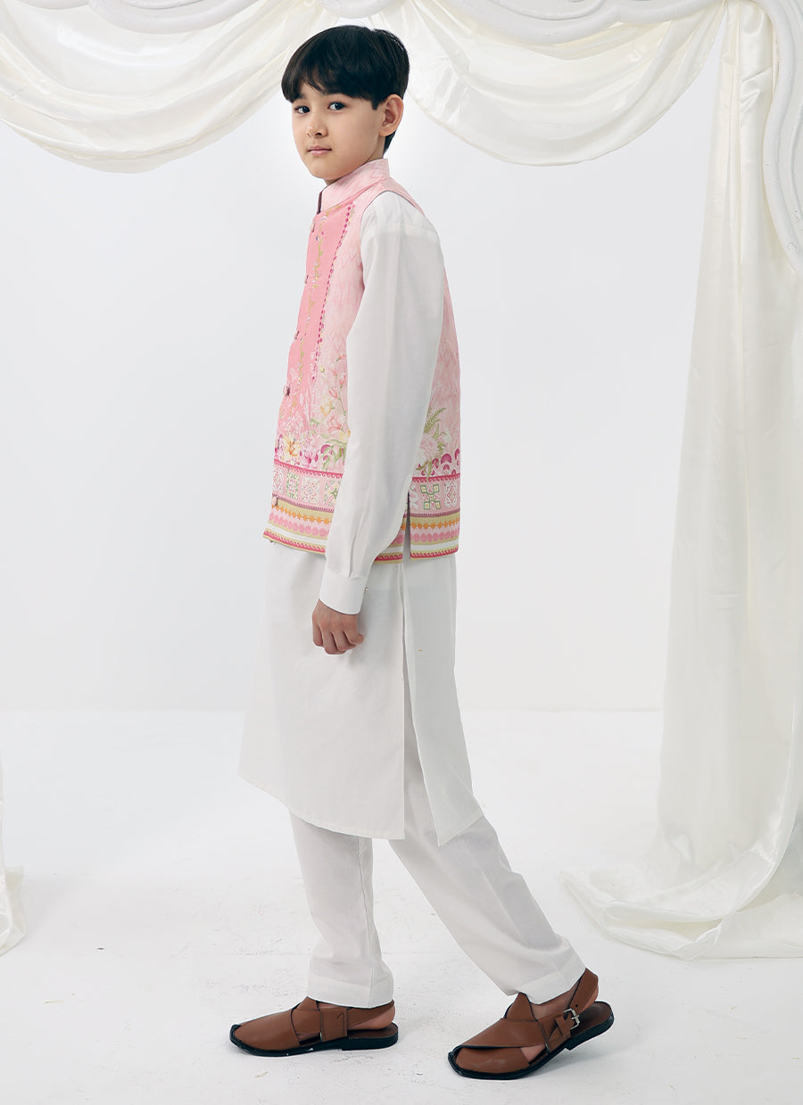 Arlo is a charming festive ensemble designed for little celebrations and big smiles. The soft pastel waistcoat brings a playful elegance to a classic kurta silhouette, making it perfect for weddings, Eid gatherings, and family festivities. Thoughtfully detailed yet comfortable, this look allows ease of movement while keeping the style polished and picture-perfect.