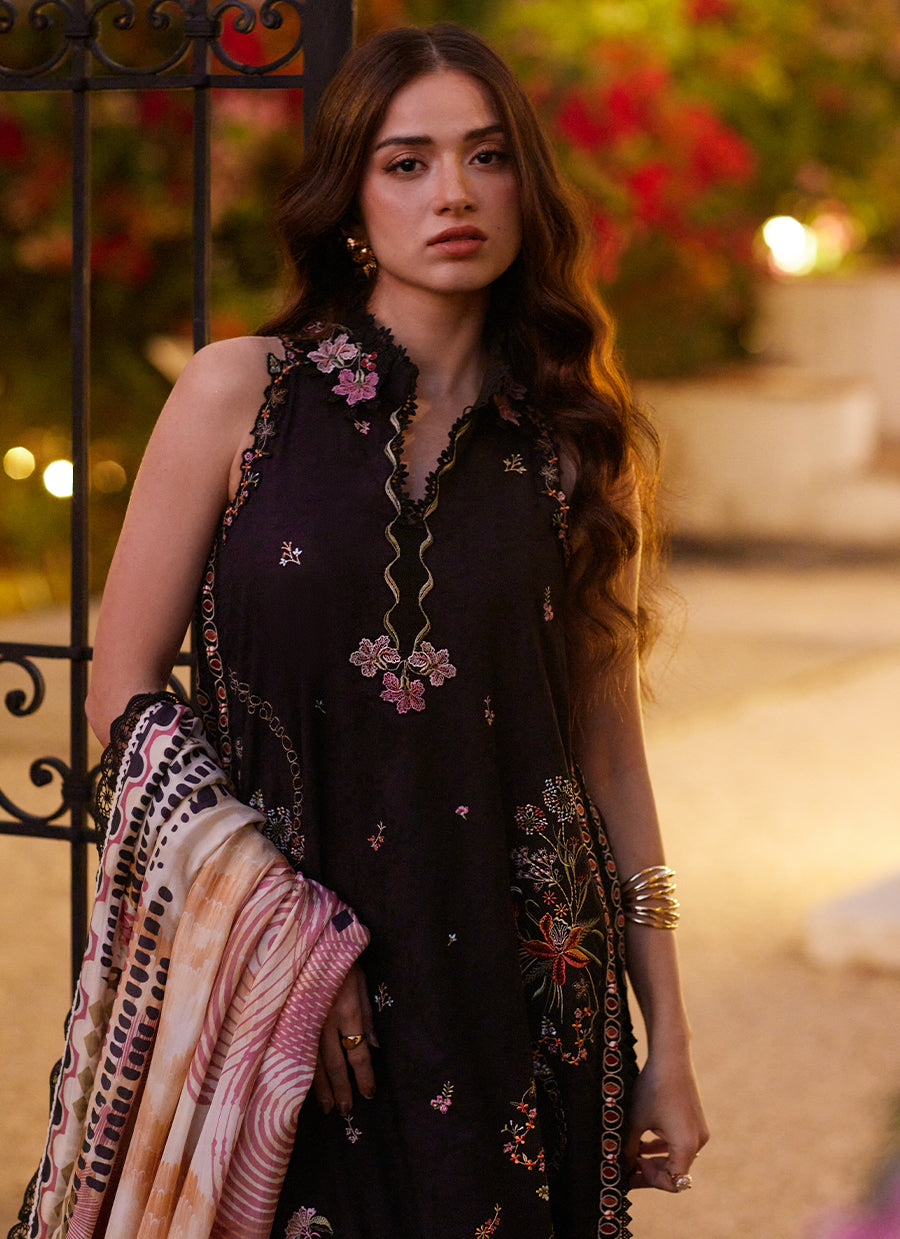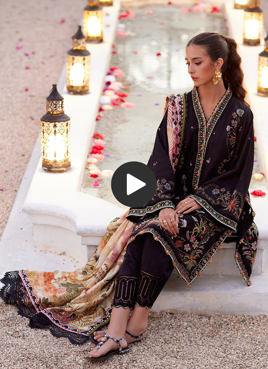 A bold tropical symphony crafted on textured jacquard — this unstitched ensemble is designed to captivate.
