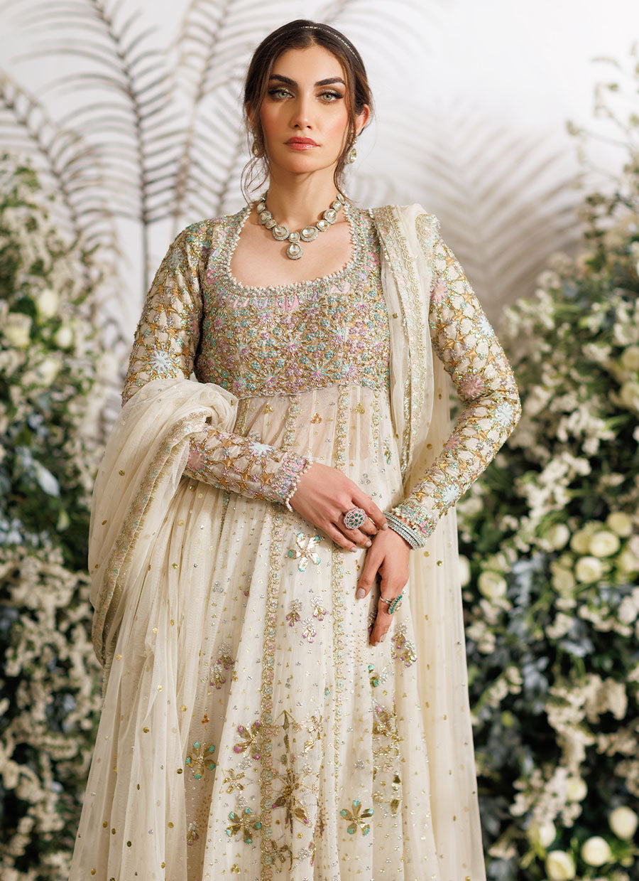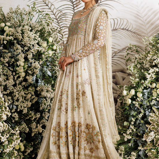 Farah Talib Aziz evokes feelings of romance, unabashed femininity and the grandeur of times past with majestic, flowing silhouettes and cascading dupattas.