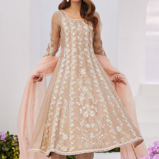 Charlene Sand Embroidered Kalidaar with Dupatta