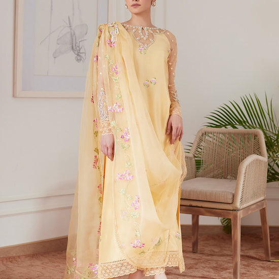 Cyrilla Pale Yellow Embroidered Raw Silk Shirt With Draped Dupatta