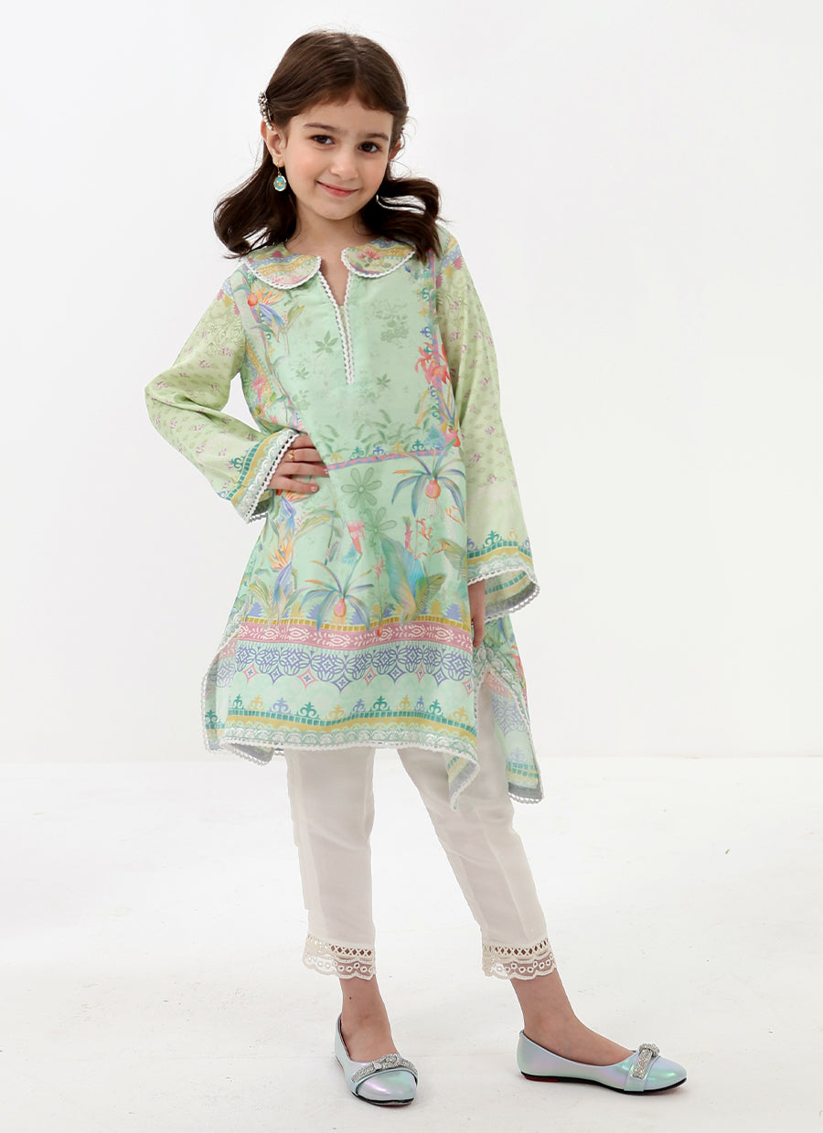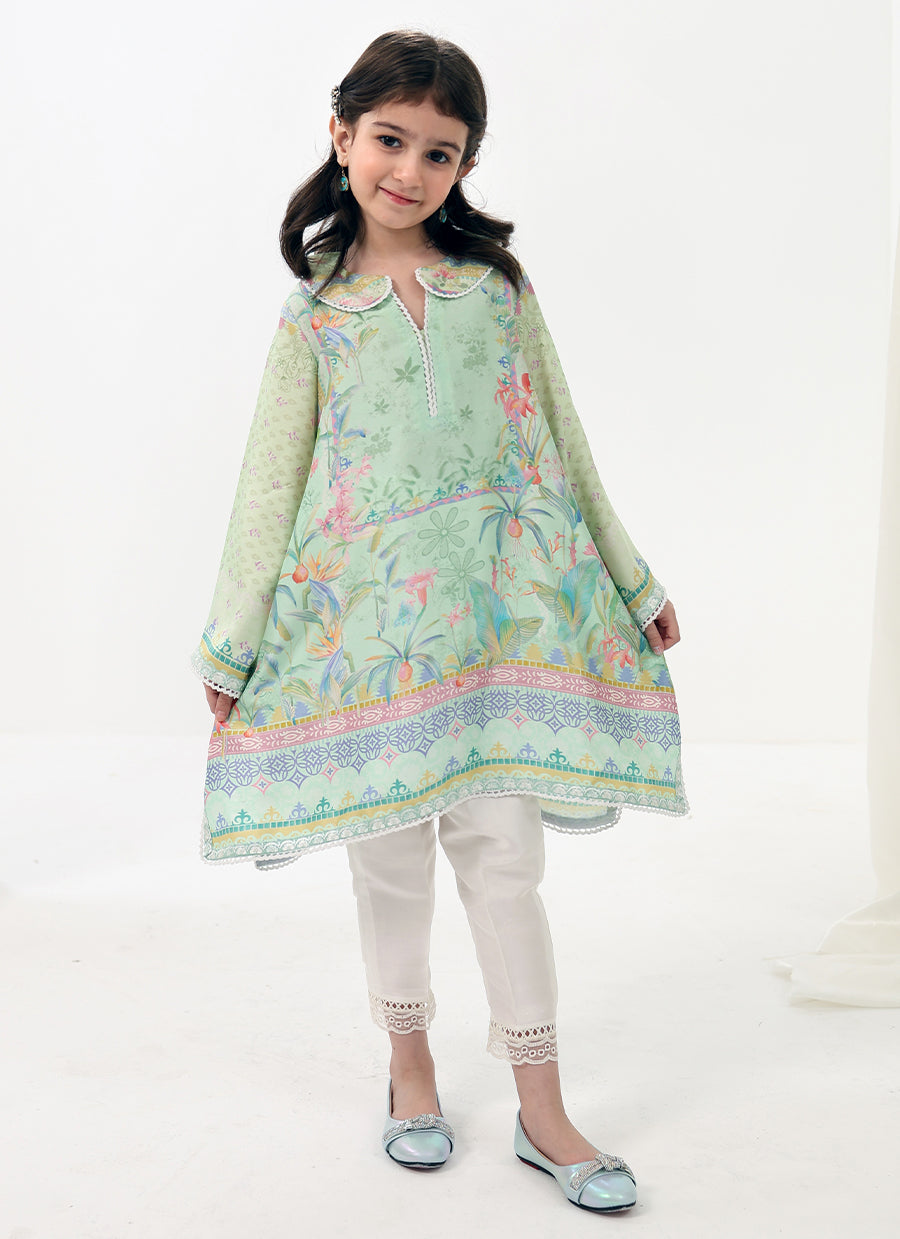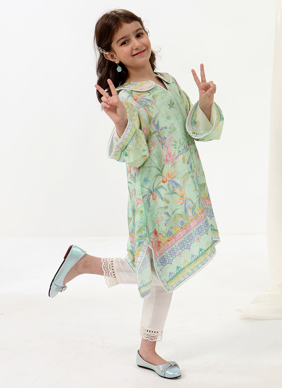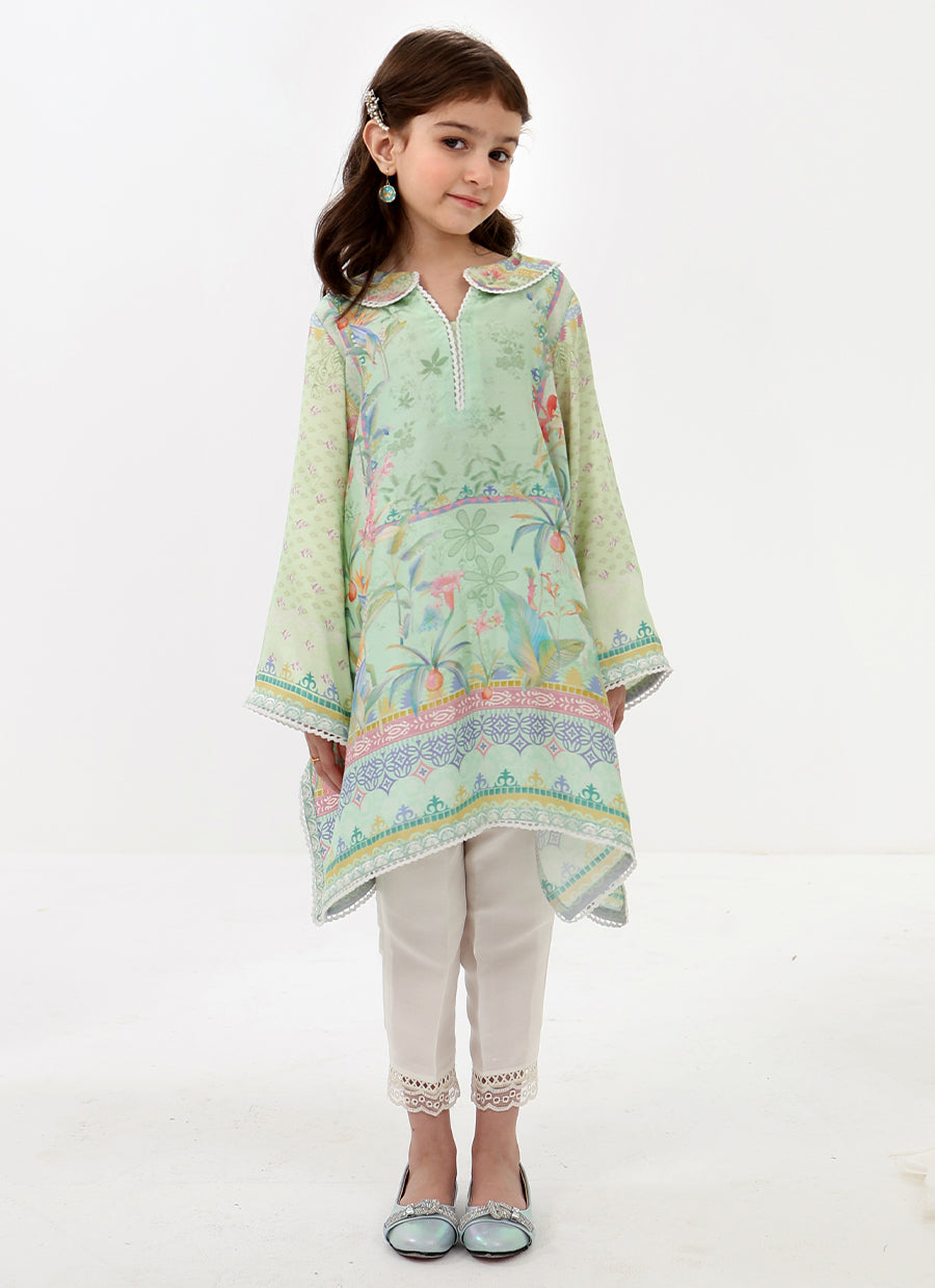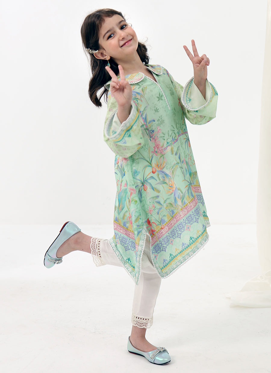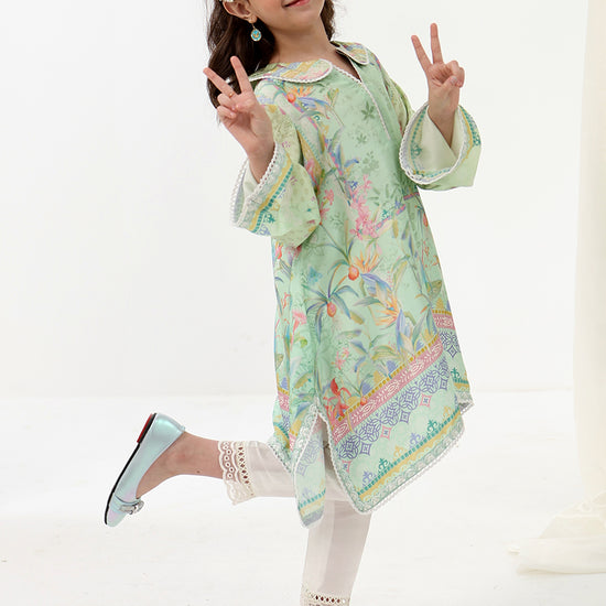 Elina Mini is a charming festive look designed with playful elegance in mind. The softly flared printed tunic features delicate detailing and a cheerful pastel palette, paired with comfortable trousers for effortless wear throughout the day.