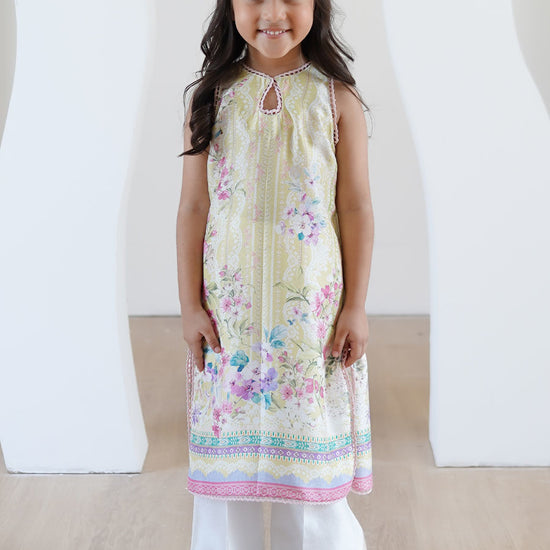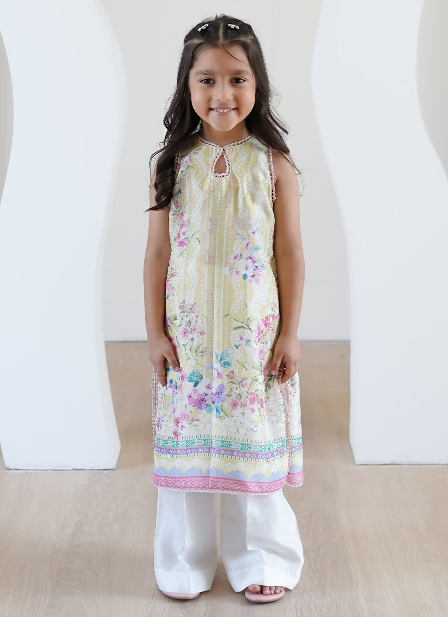 Infused with FTA’s signature charm and dreamy flair, the Elowyn ensemble is pure magic for little style stars. This soft kiwi kurta, crafted from printed raw silk, blends timeless tradition with a modern, youthful twist. The delicate print adds an understated elegance, while the luxurious fabric ensures all-day comfort—perfect for festive celebrations or special family moments. Featuring a relaxed silhouette, it’s playful yet graceful. The kurta is a delightful pick for any young girl who loves to shine with effortless style and comfort.