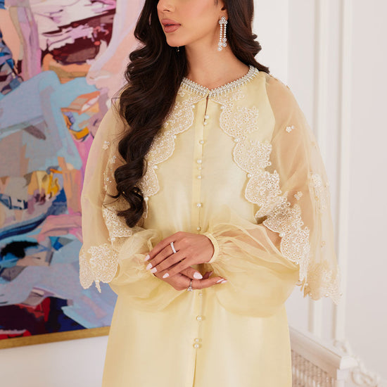 Esmeralda Pastel Yellow Raw Silk Shirt With Attached Cape