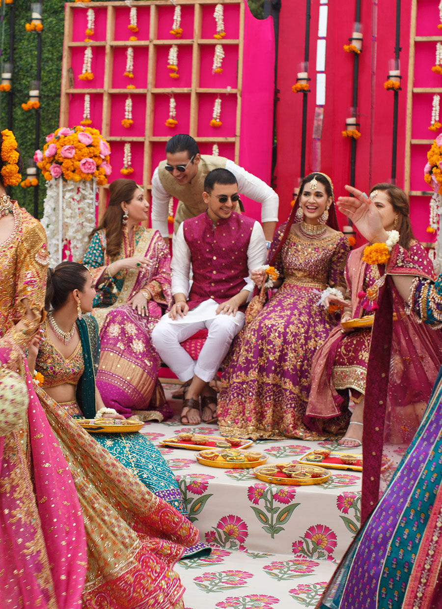 Farah Talib Aziz’s foray into menswear results in a sleek, pared down approach to the traditional festive ensemble for a groom.