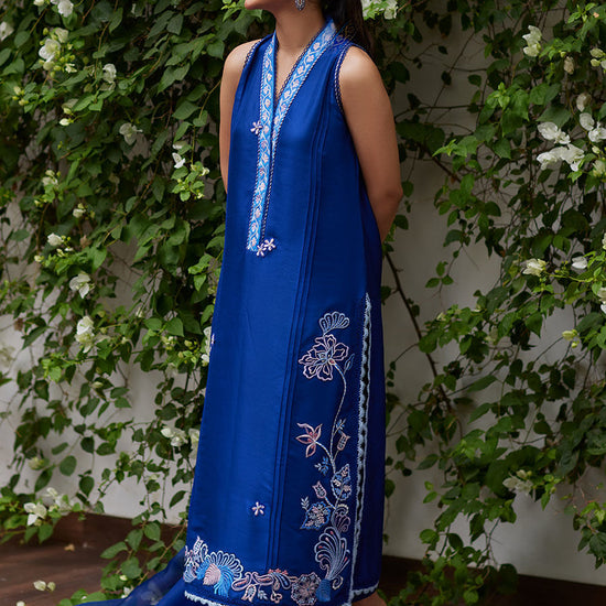 Inga Ink Blue Embroidered Raw Silk Shirt and Dupatta