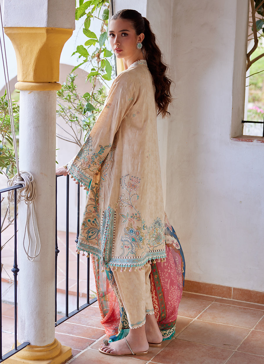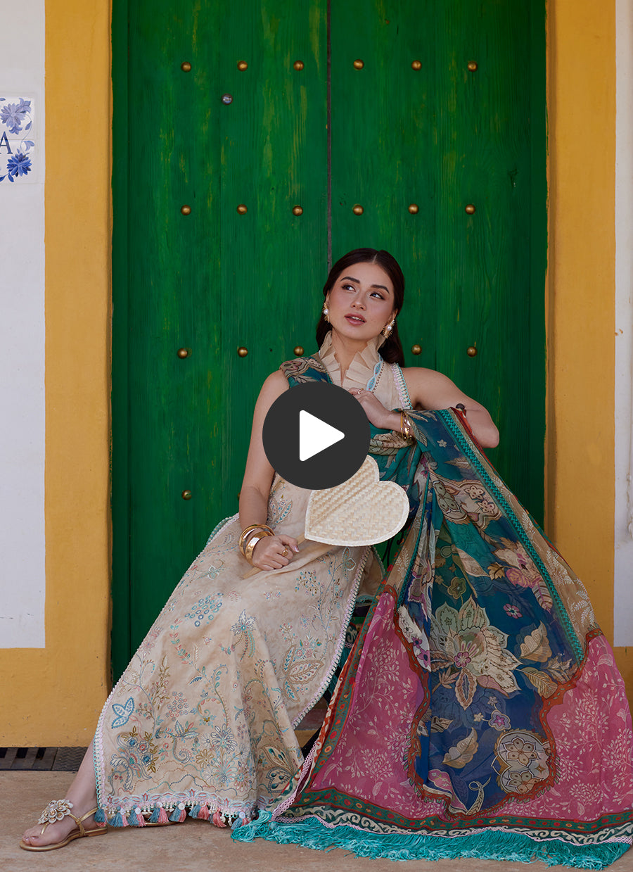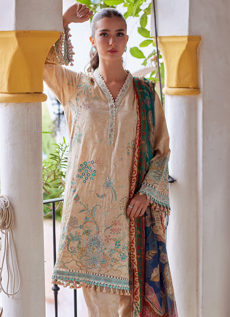 A graceful expression of nature and craftsmanship — this unstitched ensemble blends delicate artistry with timeless charm.
