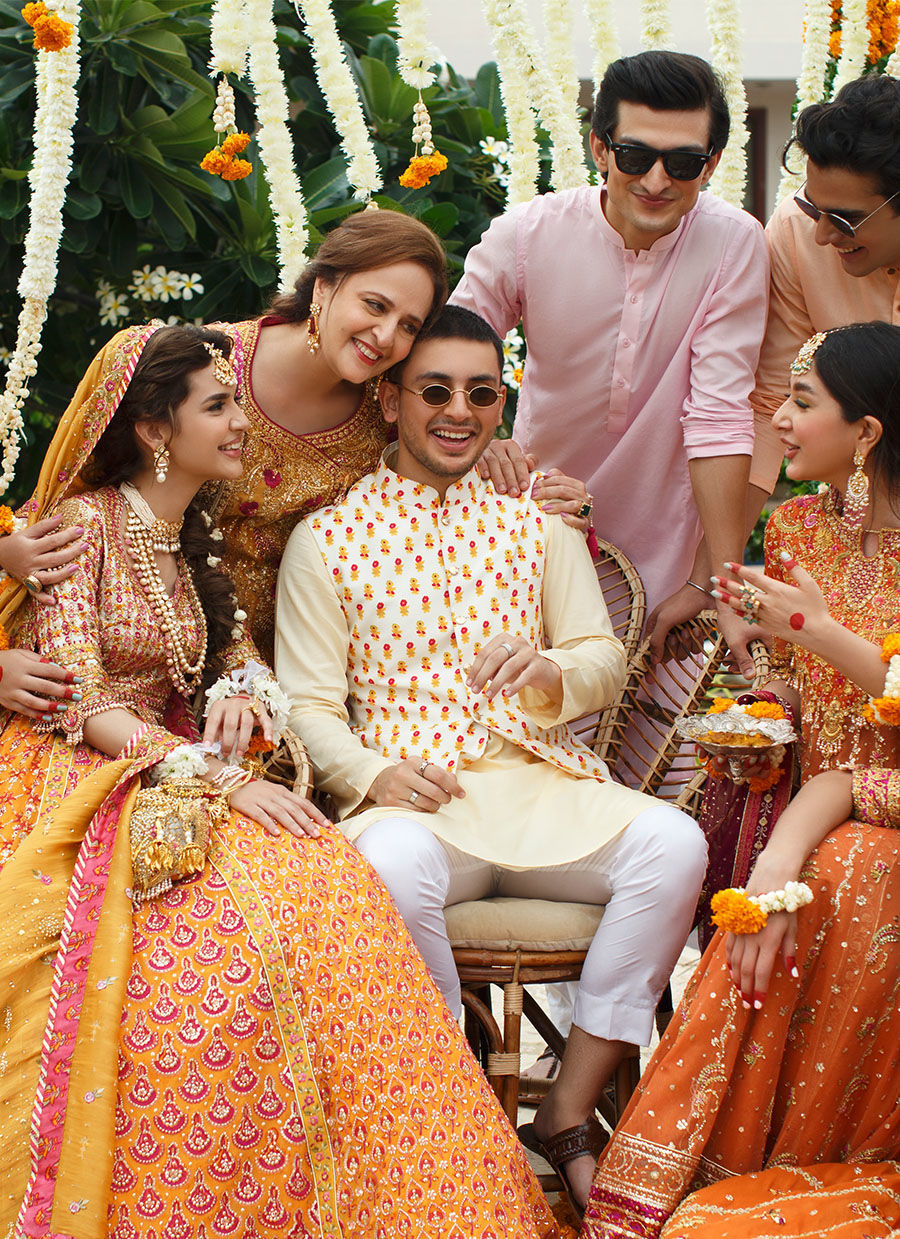 Farah Talib Aziz’s foray into menswear results in a sleek, pared down approach to the traditional festive ensemble for a groom.