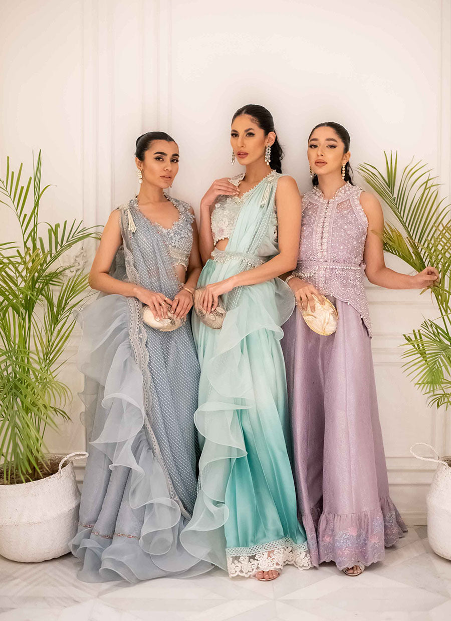 The Kasha is a flowing, floaty dream for you to indulge in. This season’s most irresistible trend, the new-age lehnga choli in a refreshing aqua tone.