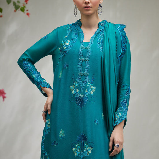 Leona Emerald Embroidered Cotton Net Shirt with Silk Dupatta