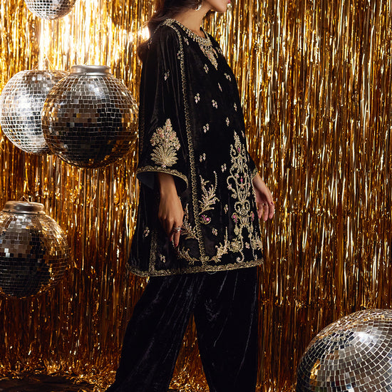 Straight velvet shirt paired with a coordinating velvet shalwar