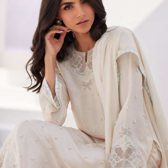Lya Ivory Embellished Raw Silk Shirt and Dupatta
