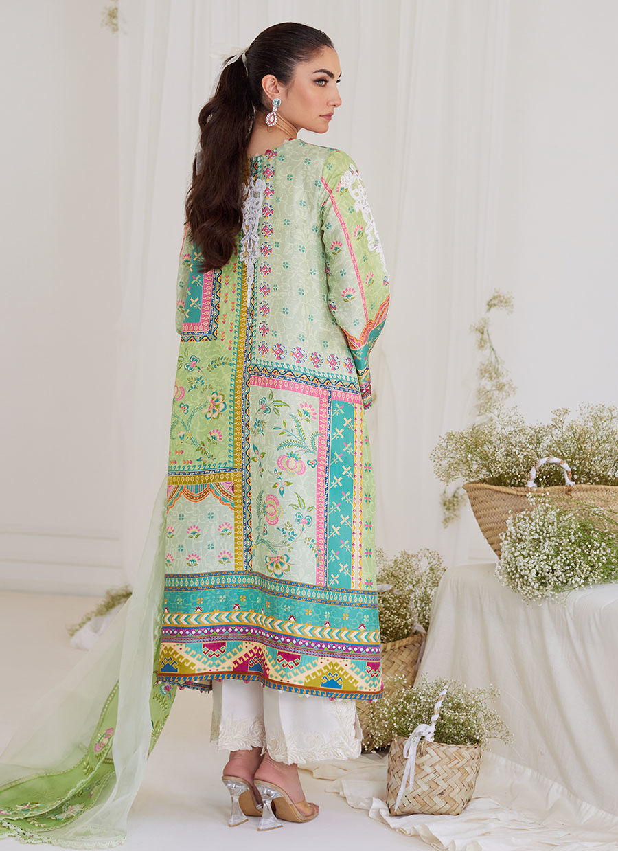 The graceful relaxed fit shirt is paired with a coordinating, organza dupatta with richly embroidered borders with botanical elements.