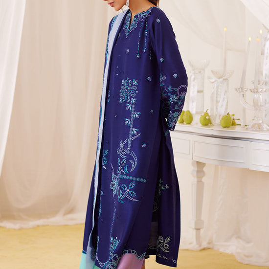 Nada Ink Blue Embroidered Shirt And Dupatta