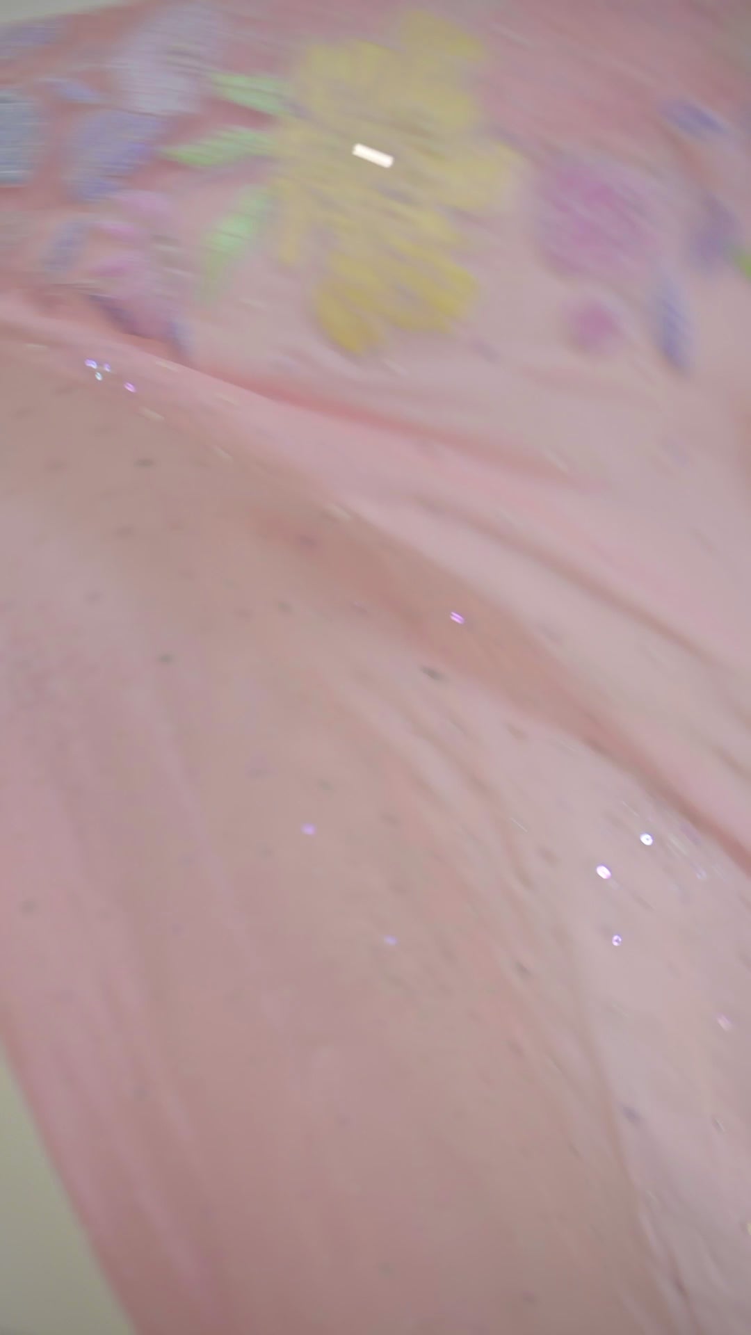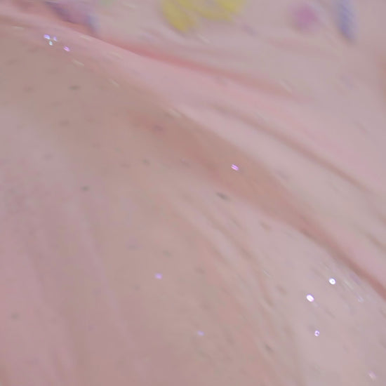 An absolutely unmissable saree, cut from pure Charmeuse silk. Adorned with intricate thread work, florals, Swarovski crystals and pearls it is truly a piece of art.