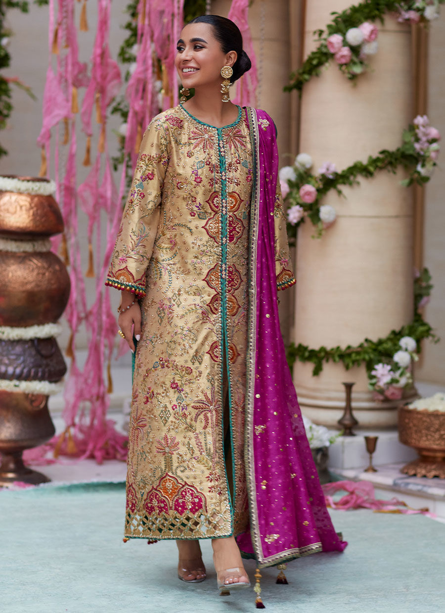 Pair yours with our signature chunri chaddar, made from pure silk (and available in a myriad of hues) drenched in enticingly luminous kaamdaani, as well as an elaborate hand worked border on all four sides. - a striking, versatile choice for any manner of occasion.