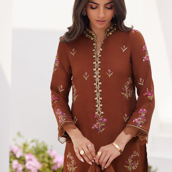 Noemie Chocolate Embroidered Raw Silk Shirt and Dupatta
