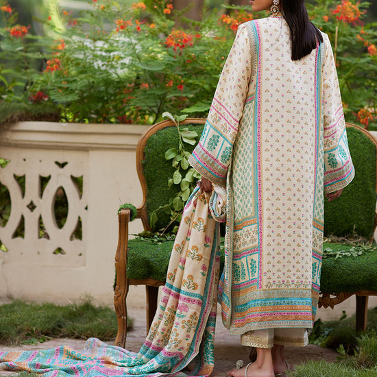 The coordinating pure medium silk dupatta is also digitally printed with stunning florals, that simply exude elegance.