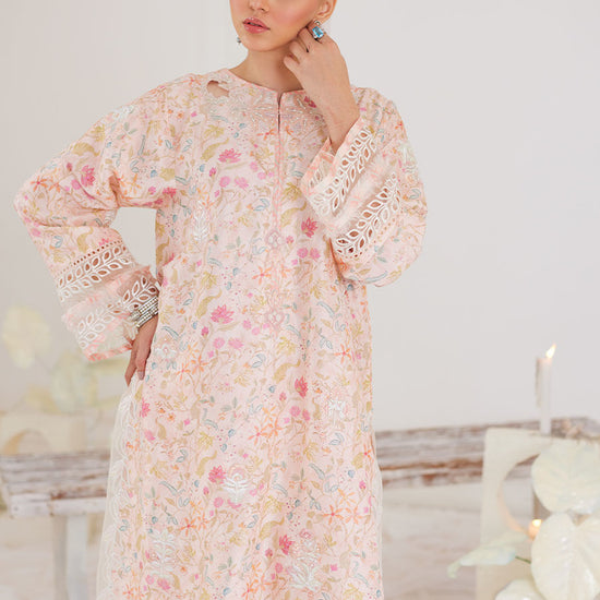 Pair yours with printed, pure raw silk shalwar as shown and statement pearl earrings to breeze through summer festivities.