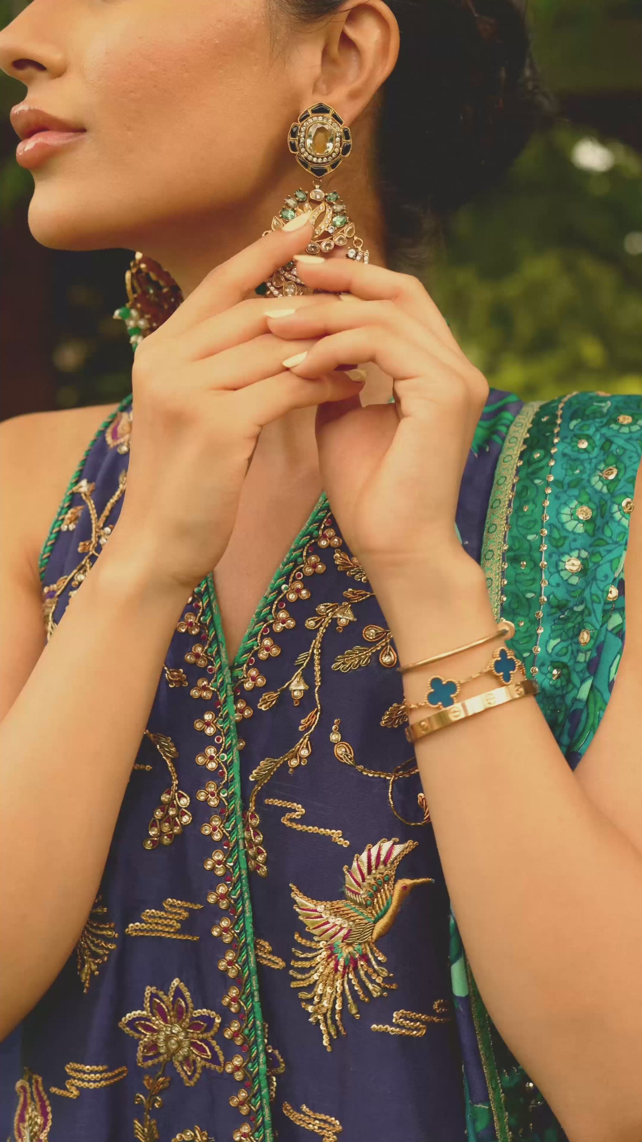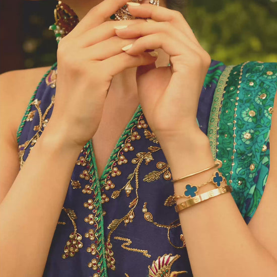 A true classic and one of our favorites of the season! This breathtaking ensemble in rich shades of blue and teal is a masterclass in color harmony and craftsmanship, making it the perfect choice for festive occasions and special celebrations.