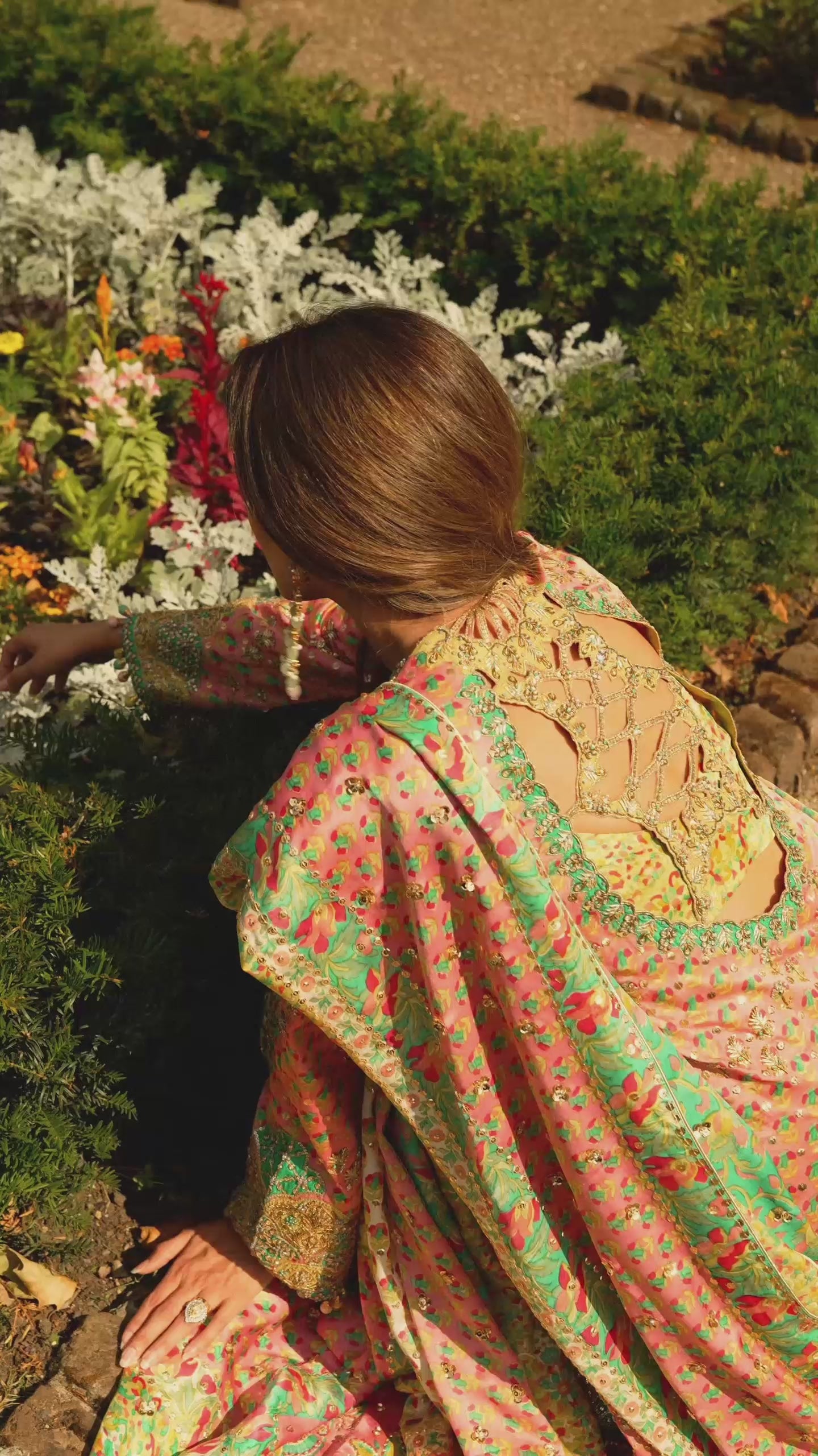 This ensemble is ideal for festive celebrations, mehndi events, or summer weddings, wherever you want to make an unforgettable impression. With its joyful color story and opulent craftsmanship, it’s the perfect blend of tradition and trend, ensuring you radiate grace and confidence all day long.