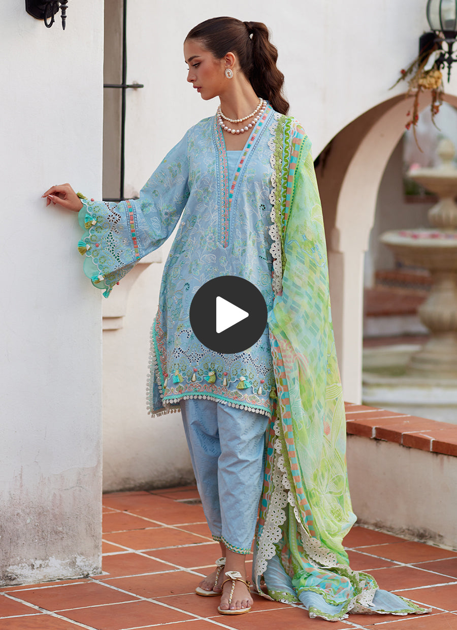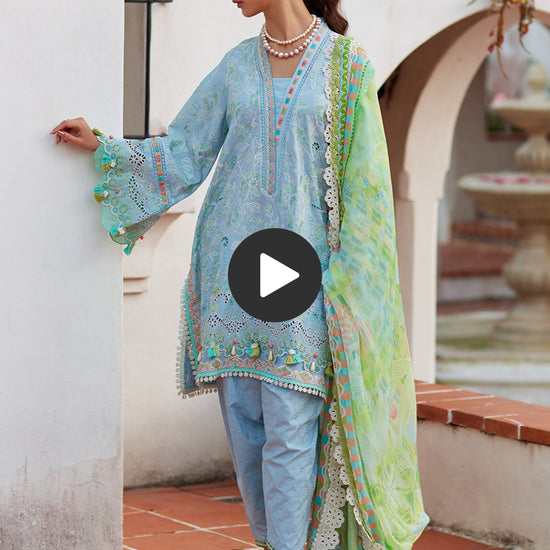 A refreshing blend of cool pastels and delicate craftsmanship — this unstitched ensemble captures the essence of modern summer elegance.