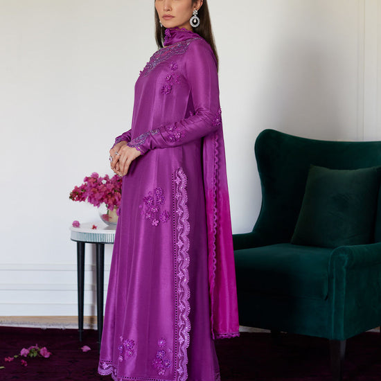 Tierra Muted Magenta Embroidered Raw Silk Kalidar With Dupatta