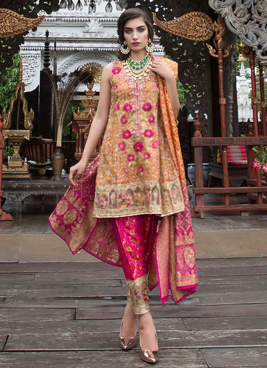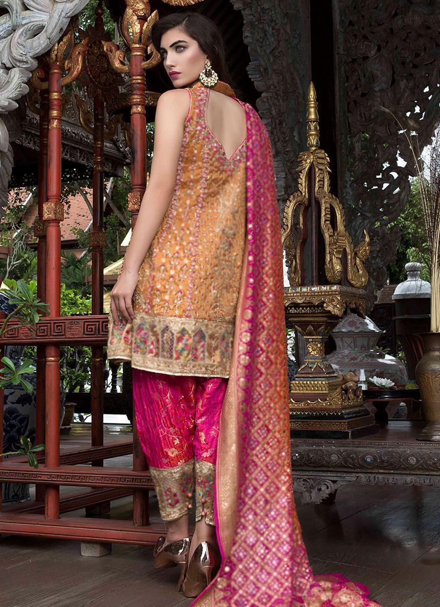 Hand worked tissue shirt with cutwork borders. Can be paired with straight pants or khari shalwar with work at the bottom, and a chan net dupatta.