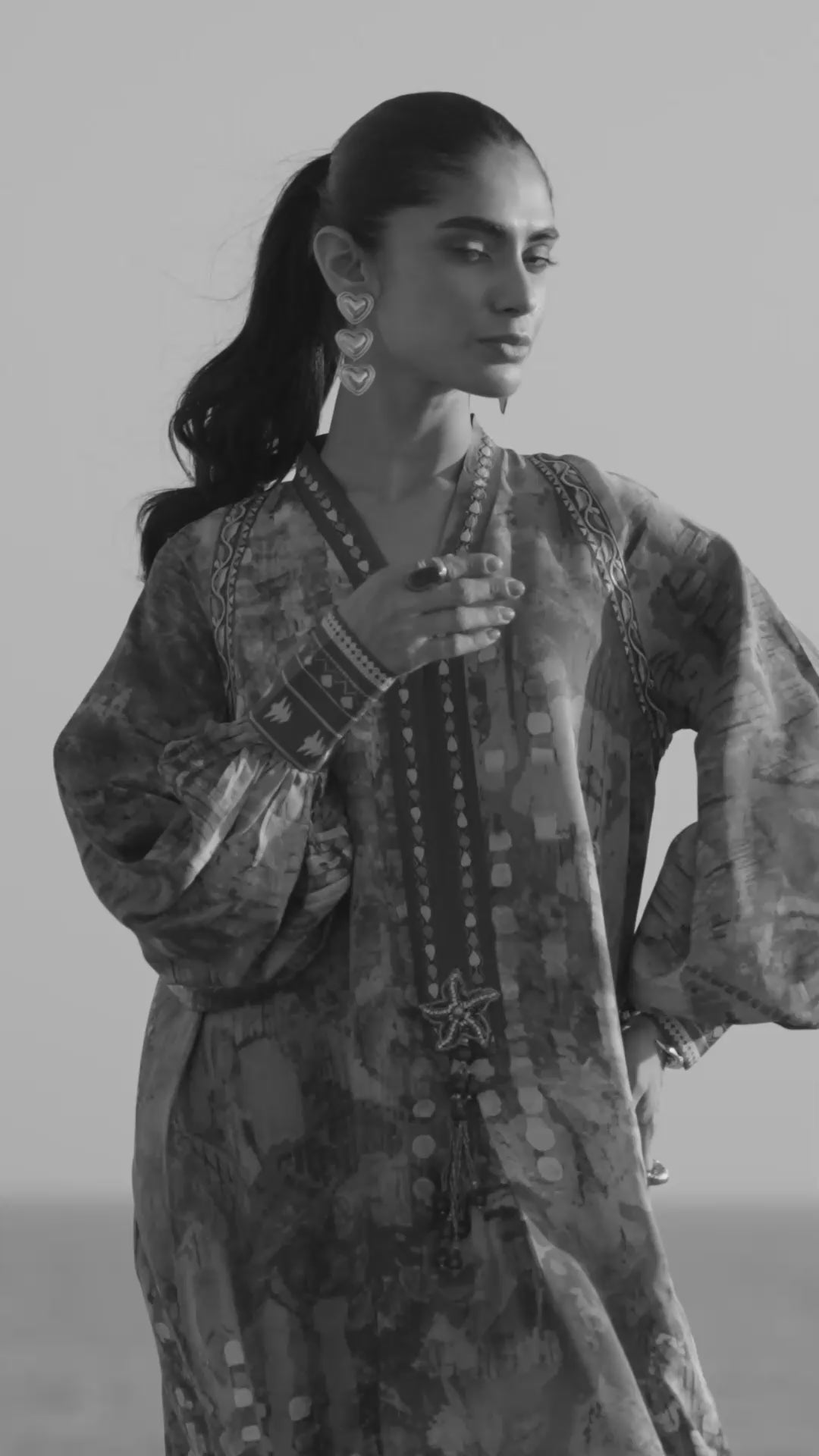 Flowing kaftan silhouette with graceful drape