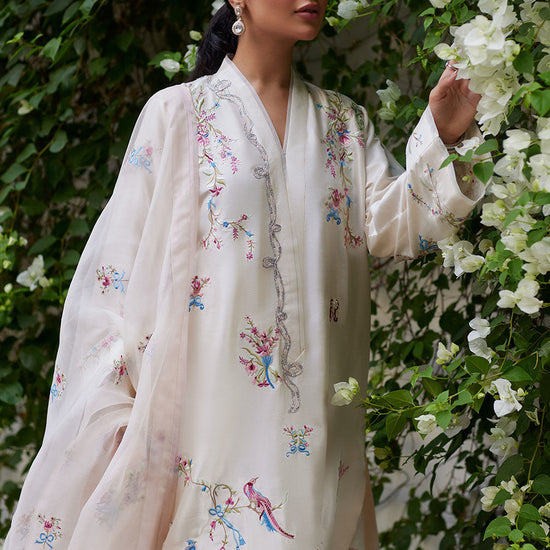 Vasily Ivory Embroidered Raw Silk Shirt with Dupatta