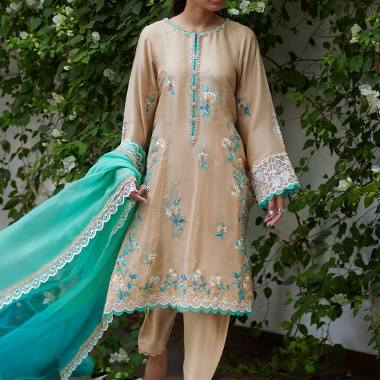 Venia French Beige Embroidered Raw Silk with Dupatta