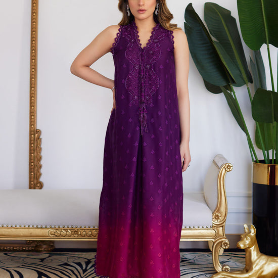 Violette Wild Berry Ombre Embroidered Raw Silk Shirt