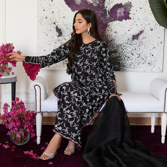 Vittoria Black Embroidered Raw Silk Shirt With Dupatta