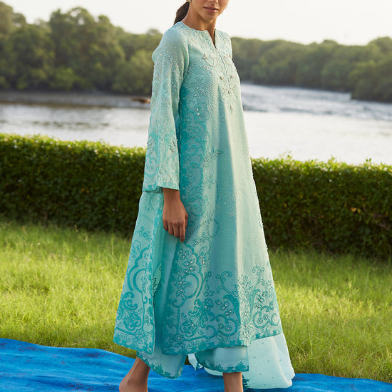 Wari Aqua Kurta And Dupatta