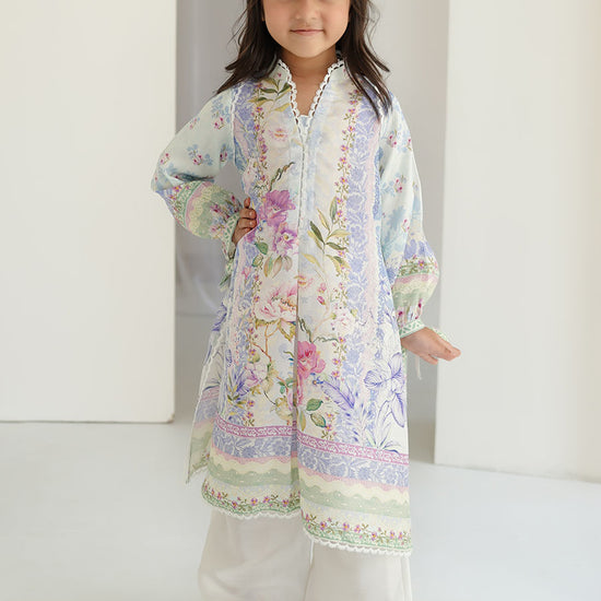 A celebration of delicate florals, luxurious textures, and timeless charm—this pale blue raw silk for young girls is a graceful ode to with a modern, youthful spirit. Rendered in soft pastel tones of blush, ivory, and mint, the ensemble features dainty floral motifs that bring a sense of freshness and femininity. Intricate floral accents elevate the look, making it a perfect choice for festive moments and special occasions where your little one can shine with poise and playful sophistication.